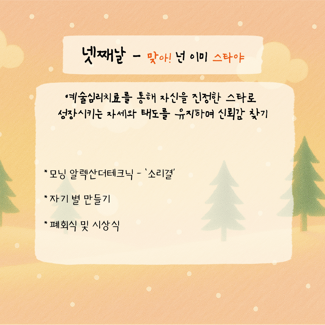 예술 심리치료를 바탕으로 자신을 지지하는 태도와 예술가적 자부심을 발견하는 시간.