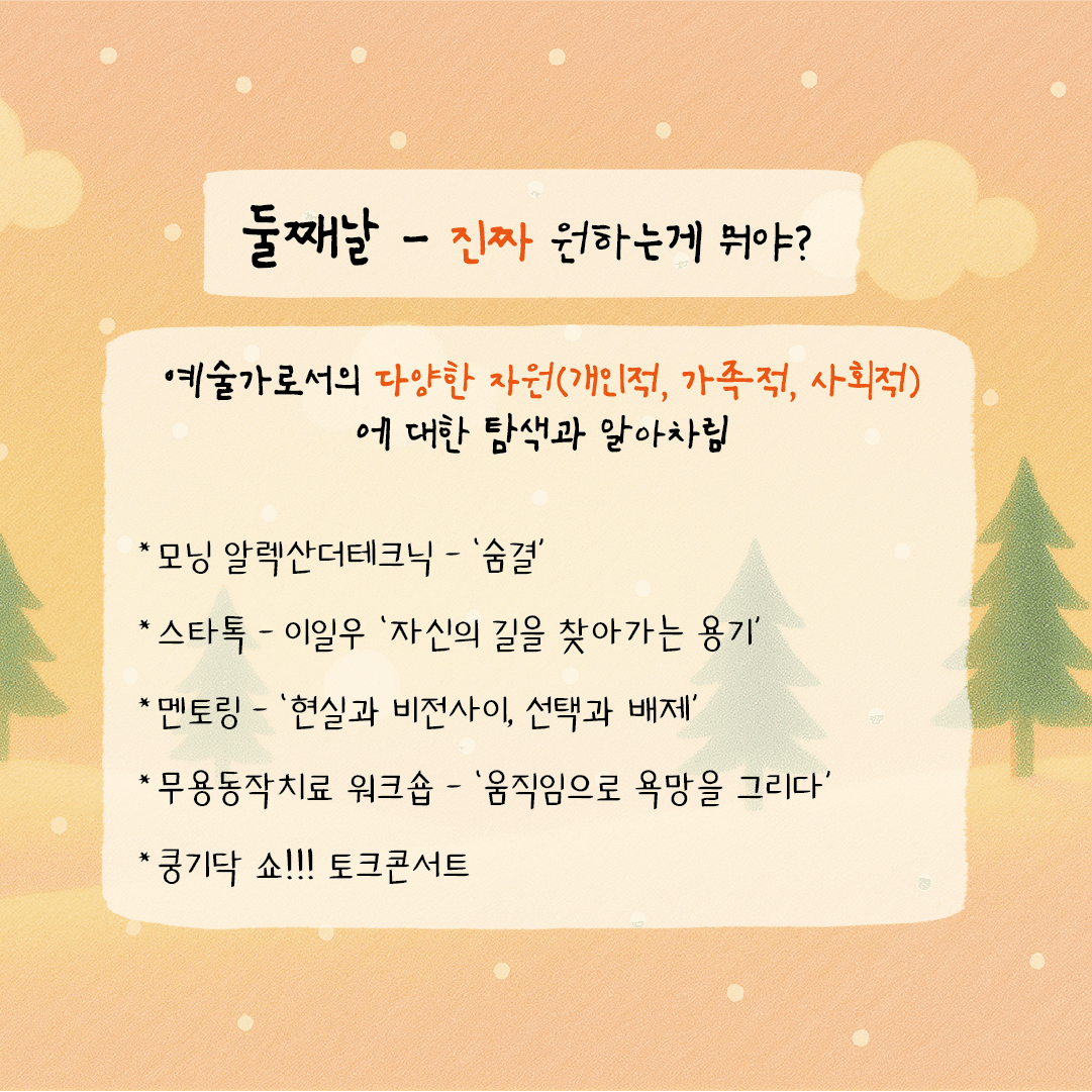 개인적·가족적·사회적 정체성에 대한 탐색과 깊은 알아차림. 내 예술의 방향성을 마주하는 시간.